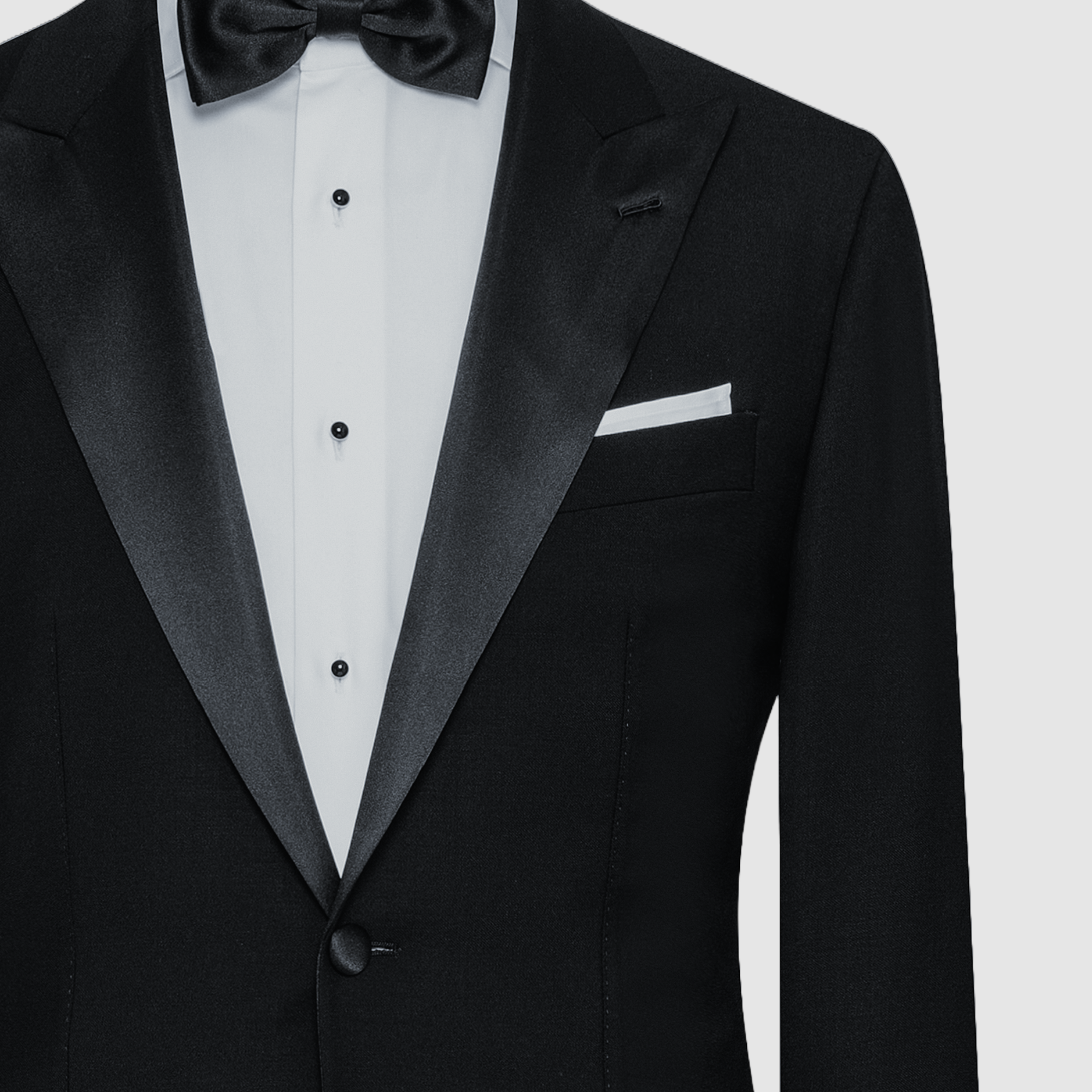 Pair with: Formal shirt with cufflinks, black lace-ups, self-tied bow tie, white pocket square