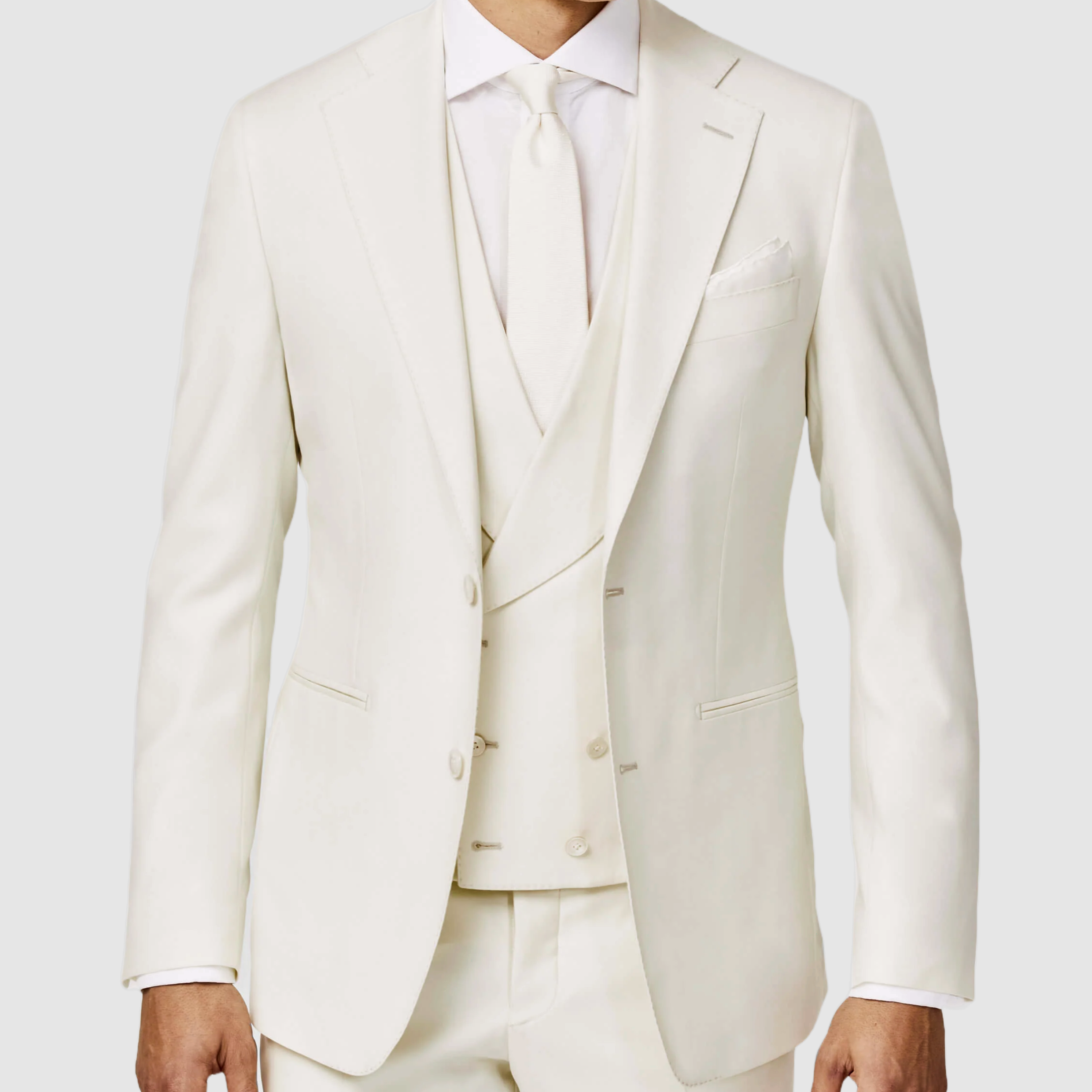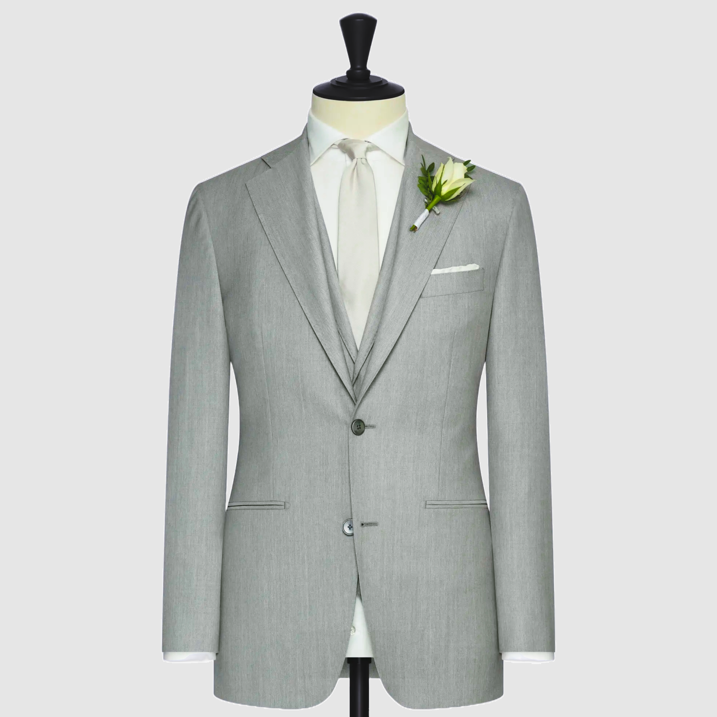 With custom made, you can select the exact combination of fabric and design details that work best for your wedding. The same colours in different fibres (e.g. wool, silk) or weave (e.g. basketweave, barathea) will produce different visual effects and will work best for different climates and time of day. You can also control design details, like lapel type and width so it complements your body proportions and desired style.